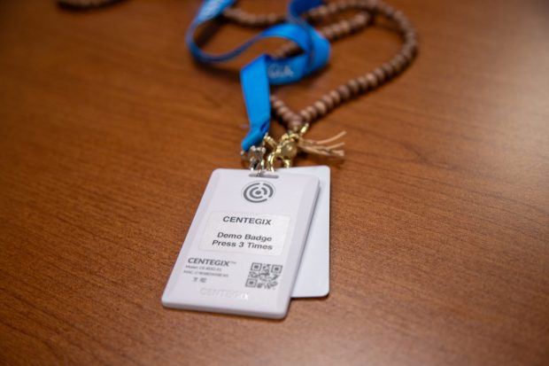 The district is the first in the state to use the wearable badges.