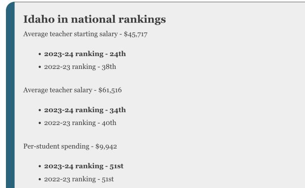 Idaho climbs 12 spots in national rankings for starting teacher pay