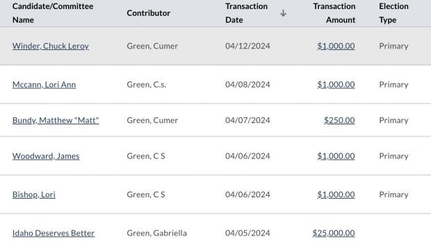Gabriella Green contributed $25,000 to Idaho Deserves Better, a third-party group that is campaigning against state Sen. Dan Foreman of Viola, a hardline conservative representing Latah County.