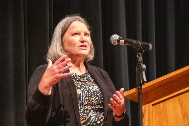 Melissa Nielsen, president of the association, and district staff member Terri Reno asked the same questions to each of the four candidates. The questions were provided before the event, so candidates could prepare their responses.