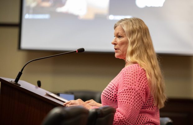 Marianne Baker testifies at the Senate Education Committee on Thursday, March 19, 2026. (Sean Dolan/EdNews)