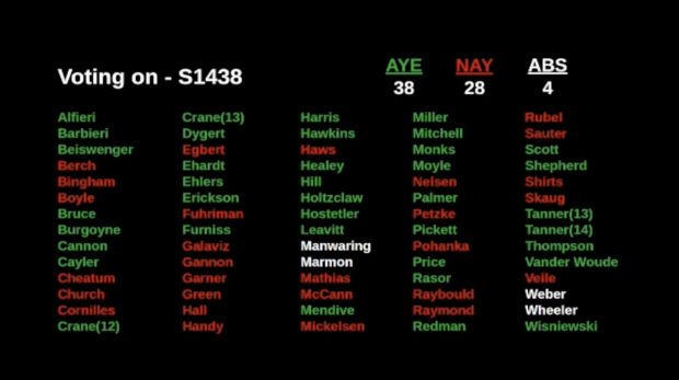 Democrats and three Republicans were opposed: Reps. Jack Nelsen, R-Jerome; Dan Garner, R-Clifton; and Shawn Dygert, R-Melba. Garner is a former school board trustee and Dygert is a former teacher.