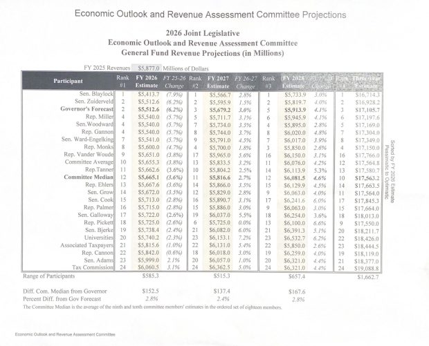 Both targets are more than $130 million higher than forecasts from Gov. Brad Little’s office. The governor’s office projected the state will collect $5.679 billion in FY 2027, a 3% increase from the current budget year.