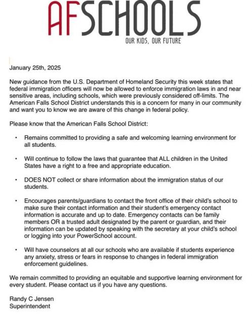 Idaho education leaders are reaching out to concerned families to assuage fears and reinforce that classrooms are safe places in the wake of a federal policy change that would allow agents to make immigration arrests at or near schools.