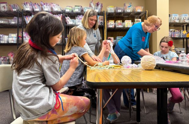 And at Longfellow Elementary School, students stretched yarn across makeshift looms made out of toilet paper rolls, stitching the arms of an octopus or crafting a snake during knitting club. “It’s honestly just entertaining, but hard, and it hurts your fingers,” said fourth grader Layden, chunky red yarn in hand.