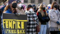 “We’re at an interesting time in history where Roe v. Wade is under attack, where there’s extremism in our Legislature … where people aren’t believing women, or believing in COVID, or believing in education or believing in talking about racism,” Hoffman told Idaho Education News after the march. “But I think coming together today is a way to say that, ‘women won’t stand for this, because we’re not going backwards. We want to go forward.'”
