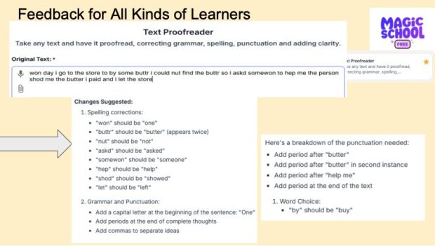 Or, students can paste in a chunk of their own writing and get feedback on grammatical, spelling and punctuation errors, like below: