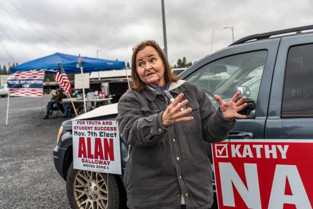 But each had challengers. Hall faced Alan Galloway, a sharp-jawed army veteran and cattle rancher who opposed “transgenderism,” efforts “to impose the outlawed teaching of CRT through SEL or any other ‘trojan horse’ scheme,” and a levy. He circulated a controversial letter with inflammatory claims, including that Hall had “failed our children by delaying action related to bullying, dress codes and Pornography within our schools.”