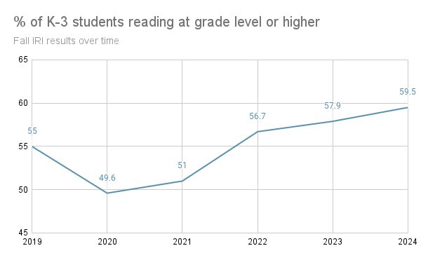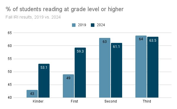 Kindergarten and first-grade scores have increased notably since fall 2019, but second- and third-grade scores still haven’t caught up with pre-pandemic literacy rates.