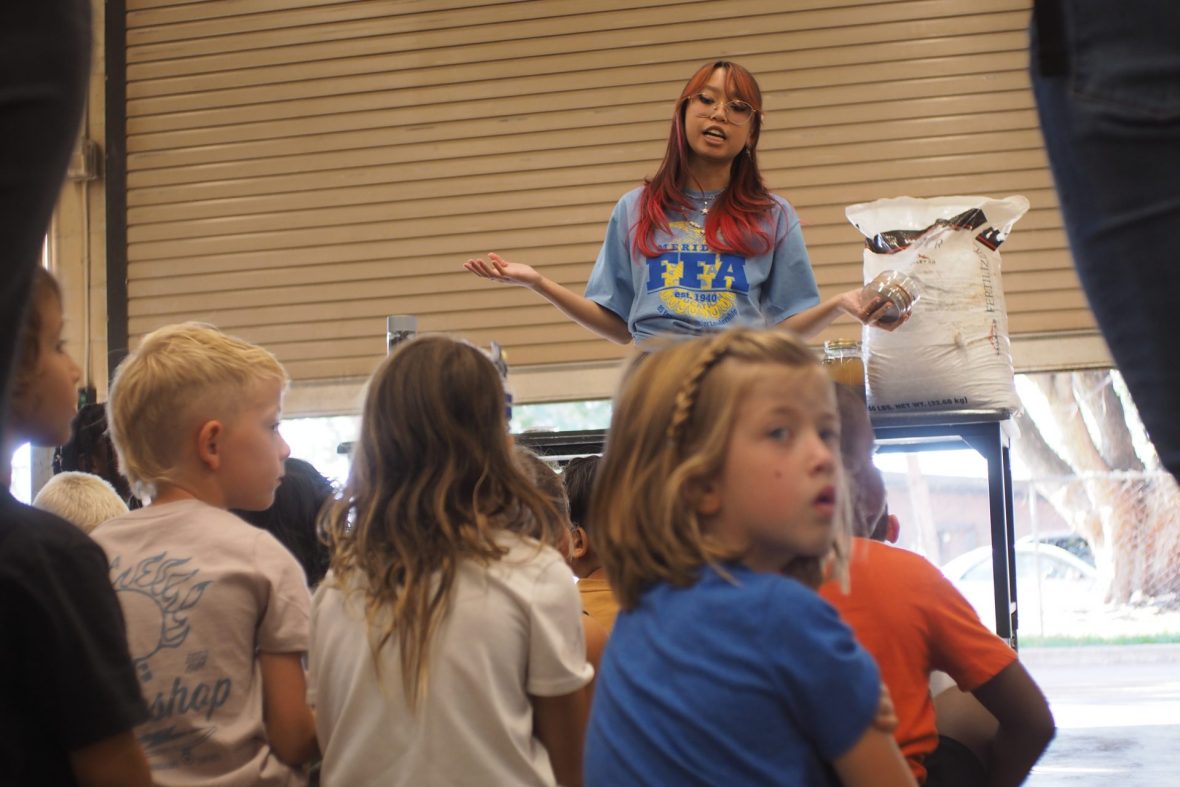 Maddi Turner’s favorite thing about the agriculture expo is the animals. The Centennial High senior and Meridian FFA member taught students about goats while surrounded by goats she’s raising herself.