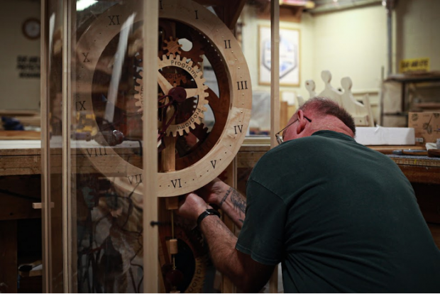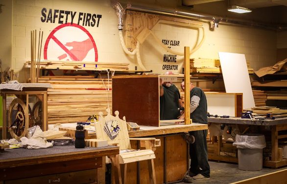 Predominantly on his desk, Tysinger keeps a wooden sign, perfect except for a large slash right through the middle of it. He says it “reminds him of his mistake” he made when setting up the cutting machine incorrectly. Similarly, Tysinger comments that other people in prison fear failure and “lack self-confidence,” which keeps them from participating in education courses.