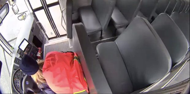 But in this case, the adult in charge is faced away from students and focused on another task entirely: driving.
