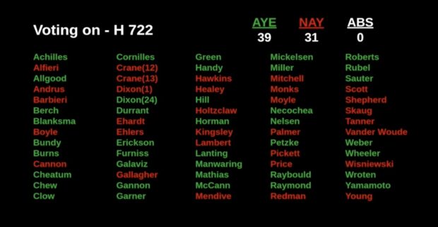 Yes: Anthon, Bernt, Bjerke, Burtenshaw, Cook, Grow, Harris, Hart, Hartgen, Herndon, Just, Lakey, Lee, Lent, Nichols, Okuniewicz, Ricks, Schroeder, Taylor, Toews, VanOrden, Ward-Engelking.