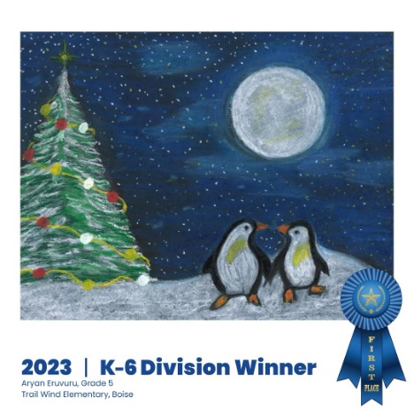 Aryan from Trail Wind Elementary won the Idaho Department of Education holiday card contest for fifth graders.