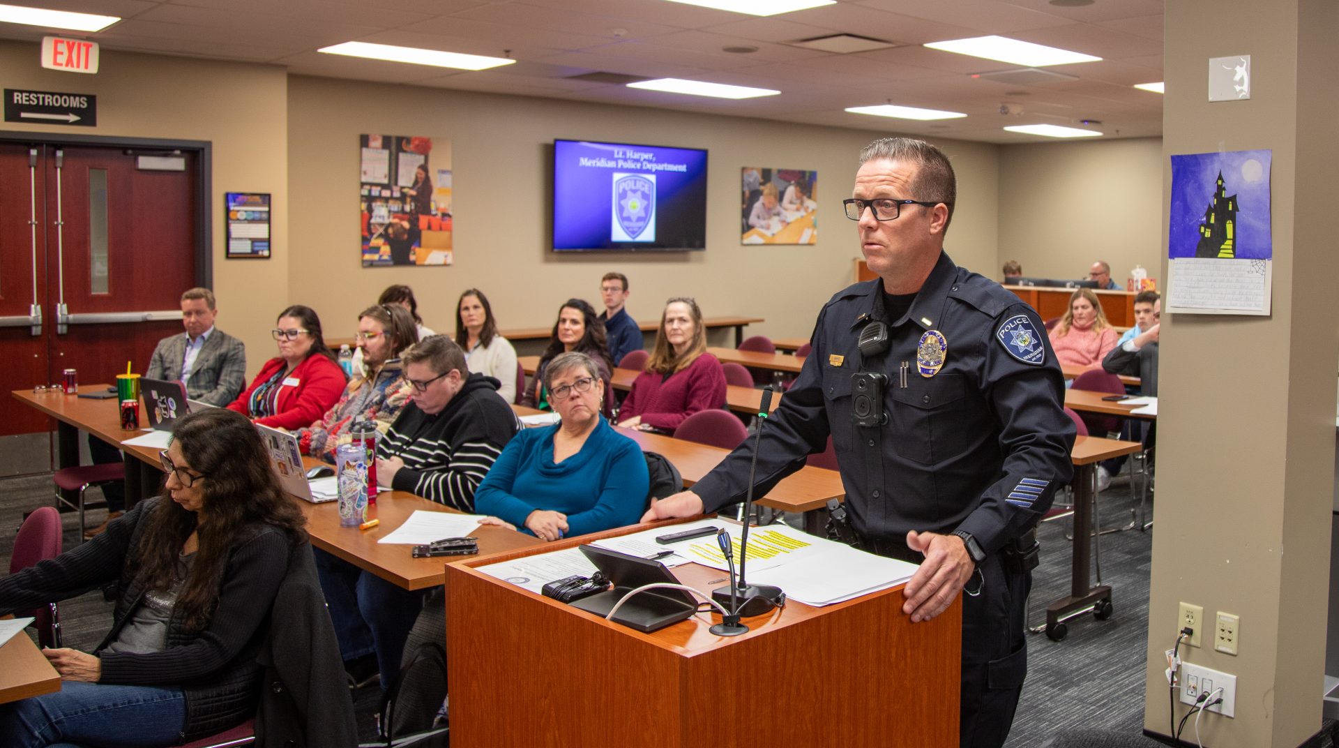 Lt. Shawn Harper of the Meridian Police Department spoke to trustees about both programs, but focused on campus sentinels. He said they would look like any other staff member.