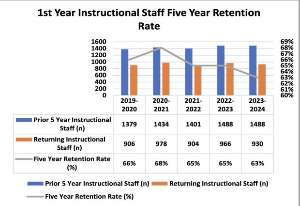 On top of that, the five-year retention rate among new teachers is just 63%.