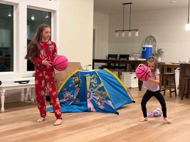 The night before, we moved our living room furniture against the walls to accommodate extended family for brunch. The older girls seized the space by grabbing their Nerf basketballs and dribbling away. Someone blasted pop music from the kitchen.