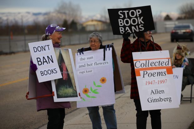 A group of protesters reminded West Ada school trustees Monday night that there is vocal opposition to the removal of books from the district’s libraries.